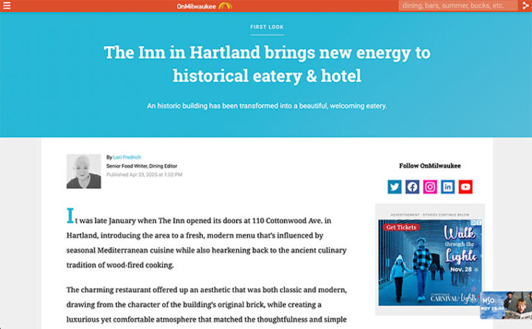 From seasonal menus to community gatherings, The Inn continues to inspire coverage from writers and storytellers who appreciate our approach to food and hospitality. Here you’ll find a curated selection of press features that reflect the heart of what we do.