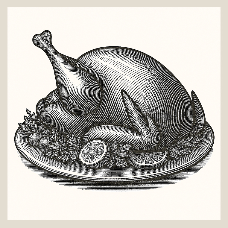 Half Roasted Free Range Turkey – spatchcocked and roasted legs, thighs & breast with onion, garlic, lemon & herbs served with turkey gravy 175